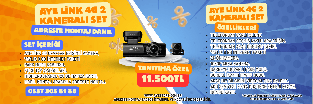 Aye Link Uzaktan Erişimli 4G Araç Kamerası Paketi - Montaj Dahil